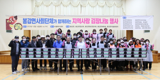 행사에는 봉강면 이장협의회, 발전협의회, 체육회, 자율방범대, 의용소방대, 새마을부녀회, 매실연구회, 생활개선회 등 15개 단체와 귀농·귀촌 주민들 70여 명이 참여한 가운데 정성스럽게 버무린 김장김치 300포기를 담아 겨울철 김장이 어려운 취약계층 100가구와 경로당 등에 손수 전달하며 안부도 살폈다.