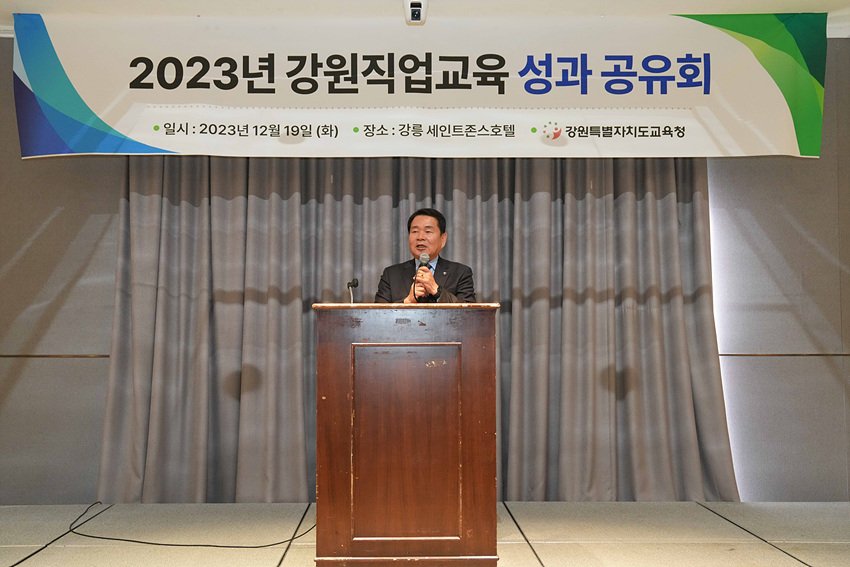 신경호 교육감은 “오늘 성과공유회를 통해 학생의 성장에 집중하여 열정적으로 지도해 주신 선생님의 노고와 직업교육팀의 다양한 정책지원 덕분에 직업교육의 성공적인 모델은 물론, 교육 현장의 변화를 이끈 성과를 확인할 수 있었다”며 “올해의 우수한 성과를 자양분 삼아 미래 직업교육의 새로운 모델 개발에 주력하고 강원도 직업교육정책을 수립해 교육으로 강원을 꽃 피우는 데 최선을 다하겠다”고 말했다.