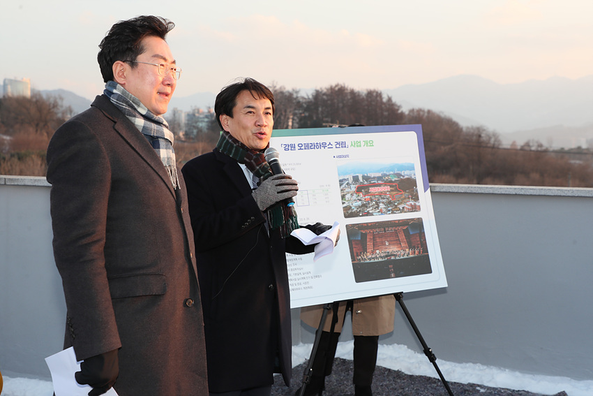 김진태 지사는 “앞으로 강원 오페라 하우스는 사업비 2000억원의 초대형 프로젝트로 구상하는 만큼 원주와 강원특별자치도를 넘어 대한민국의 랜드마크가 되도록 고품격 오페라 하우스와 복합공연장, 문화창작·체험센터 등 융복합 문화공간으로 건립하겠다”고 밝혔다.