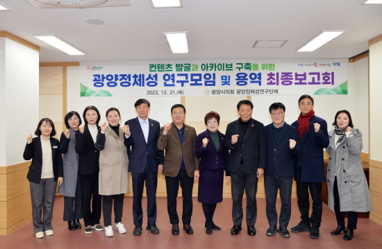 (전남=NSP통신) 김성철 기자 = 광양시의회 ‘광양정체성 연구단체’(대표의원 김정임)는 지난 21일 광양시의회 2층 상담실에서 ‘컨텐츠 발굴과 아카이브 구축을 위한 광양 정체성 연구’ 용역 최종보고회를 개최했다.