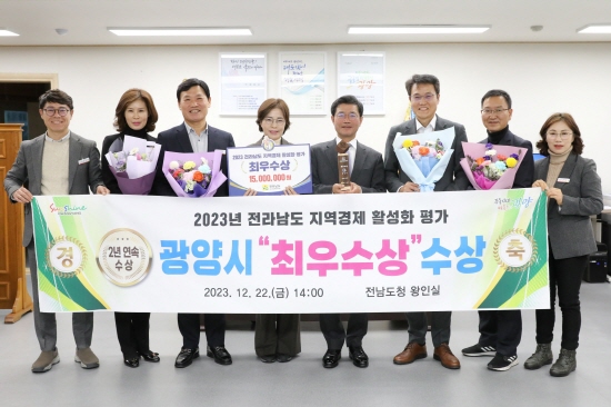 광양시, 2023년 지역경제 활성화 평가 '최우수상' 수상 쾌거