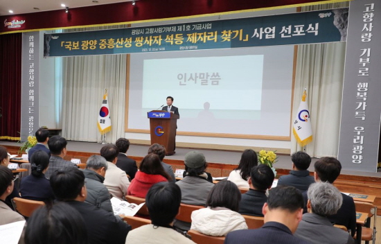 이번 제1호 기금사업 선포식은 ‘함께하는 고향사랑 함께하는 광양문화’라는 부제로 ‘국보 광양 중흥산성 쌍사자 석등 제자리 찾기’ 사업을 시민뿐만 아니라 관외 기부자들에게 널리 알려 전 국민의 염원을 담은 사업의 시작을 알리고 광양을 사랑하는 많은 분의 고향사랑기부제 참여를 위해 실시됐다.