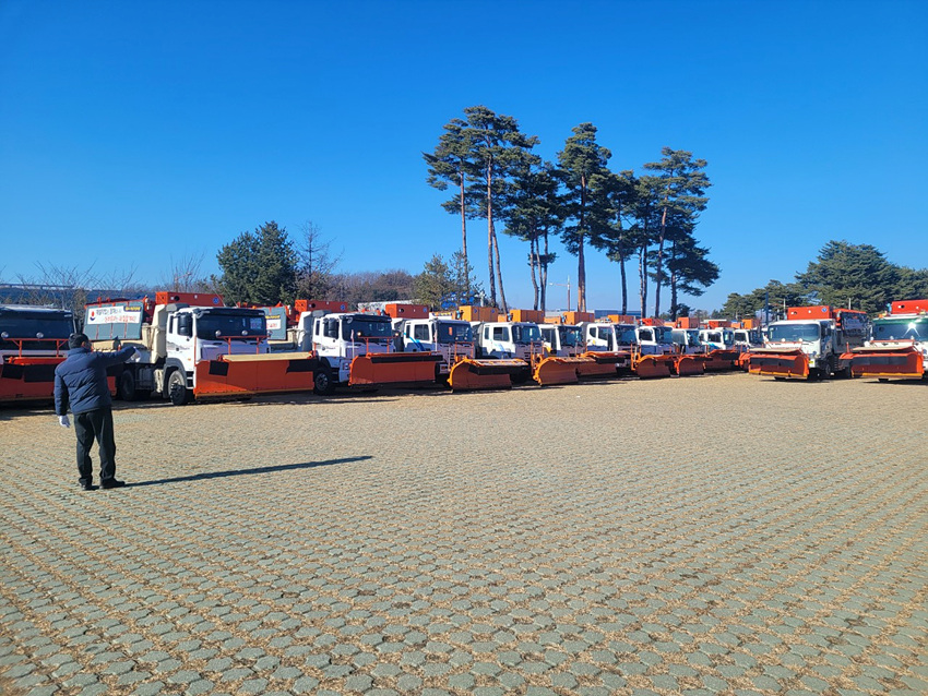 시는 지난 21일부터 2024년 3월 10일까지 제설 대책 기간으로 정하고 15톤 덤프트럭을 포함한 임차 제설 장비 48대와 시 보유 제설장비 8대를 활용해 동서측과 남북측의 주요도로 25개 노선 304.5km 및 제설취약지역인 급경사지 22개소 13.61km를 집중 관리를 한다.