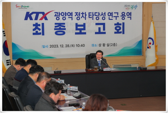 (전남=NSP통신) 김성철 기자 = 광양시는 지난 28일 경전선 KTX-이음 광양역 정차 타당성 연구 용역 최종보고회를 개최한 결과 경전선 KTX-이음 광양역 정차의 타당성을 확보했다고 밝혔다.