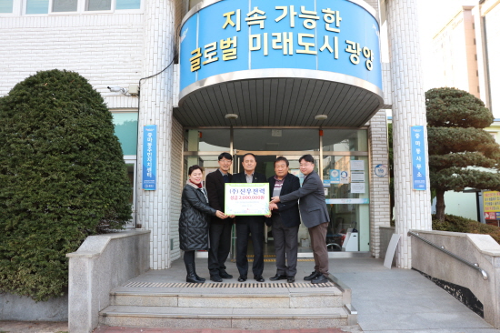 하울림 골프동호회 성금 150만 원은 회원들이 1년간 ‘사랑의 버디 샷’을 통해 성금을 모금한 것이다. 김정용 회장은 “어려운 이웃들에게 나눔을 실천해 정과 사랑이 넘치는 중마동이 됐으면 한다”고 전했다.