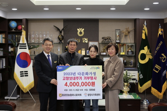 (전남=NSP통신) 김성철 기자 = 동광양농협(조합장 이돈성) 하나로마트가 수익금의 일부를 지역사회에 환원하는 ‘다문화가정 여성 고향 보내주기’ 사업을 3년만에 재개했다.