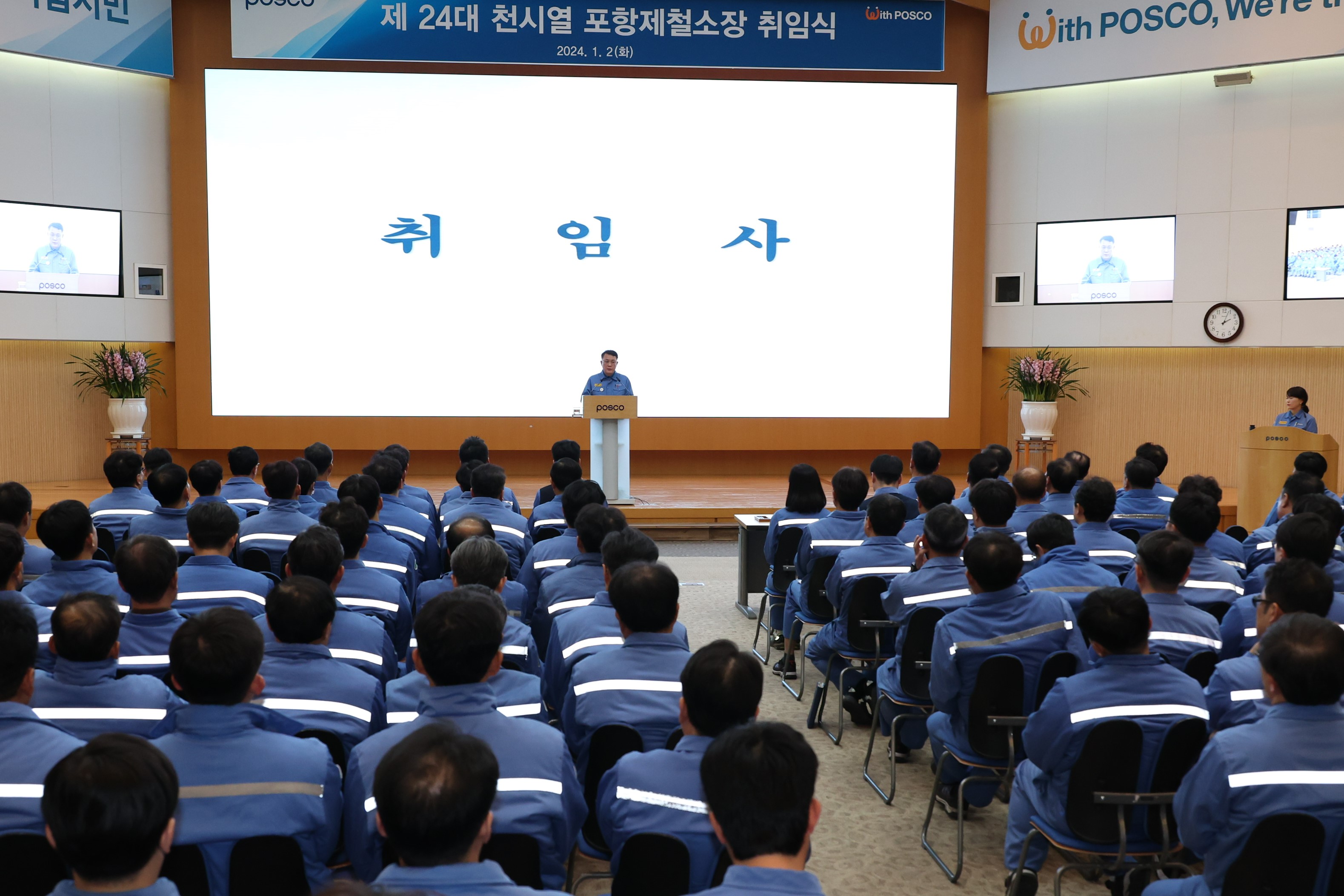 (경북=NSP통신) 조인호 기자 = 포스코(005490) 포항제철소(소장 천시열)가 2일 포스코 본사 대회의장에서 천시열 제24대 포항제철소장의 취임식을 가졌다.