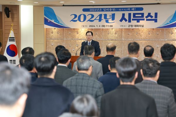 (전남=NSP통신) 김현 기자 = 신우철 완도군수는 1월 2일 시무식에서 신년사를 통해 “올해 신년 화두는 한번 날면 높이 하늘까지 닿아 대업을 성취한다는 뜻의 일비충천(一飛沖天)으로 정했다”면서 “그동안의 성과를 바탕으로 군이 비상할 수 있도록 최선을 다해 군정을 이끌겠다”라고 포부를 밝혔다.