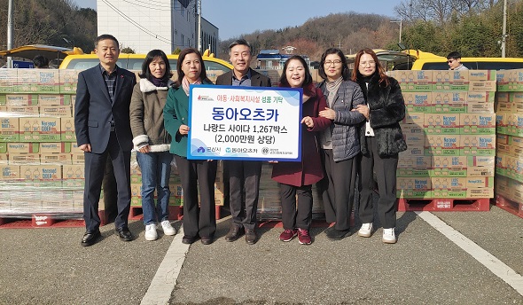 (전북=NSP통신) 김광석 기자 = 전북 군산사회복지장학회(이사장 김기봉)는 4일 동아오츠카에서 나랑드 사이다 1267상자(2000만원 상당)를 후원받아 군산시 아동 및 사회복지 시설에 나눔을 실천했다.