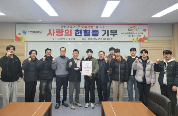 이어 “기부 행사를 마련해 준 한영대학교 관계자 및 헌혈동아리‘공유’ 학생들에게 감사하다”고 덧붙였다.