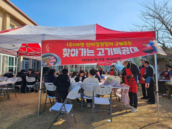 6회차를 맞아 이번 ‘찾아가는 고기특공대’는 해남군의 보육시설인 등대원을 찾아 원생들과 함께하는 자리를 마련했다. 특히 해남 솔라시도에서 산이정원을 조성 중인 아영 산이정원팀 직원들과 지역 국회의원 및 예비후보자, 해남군의회 민홍일·민경매·이기우 의원 등이 참여하여 봉사활동에 힘을 실어주었다.