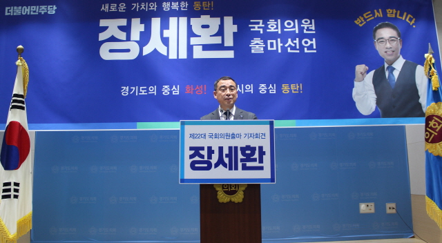 (경기=NSP통신) 김종식 기자 = 장세환 더불어민주당 화성을 국회의원 예비후보가 경기도의회 브리핑룸에서 출마를 선언했다.