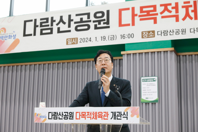 정명근 화성시장은 기념사를 통해 “다람산공원의 다양한 편의시설은 지역 주민에게 풍성한 여가와 휴식을 제공하고 있으며 다목적체육관은 다람산공원의 화룡점정이 되는 공간”이라며 “시민의 건강과 여가 생활 증진을 위해 100만 도시 화성시에 걸맞은 체육 인프라 확충을 위해 앞으로도 노력하겠다”고 말했다.