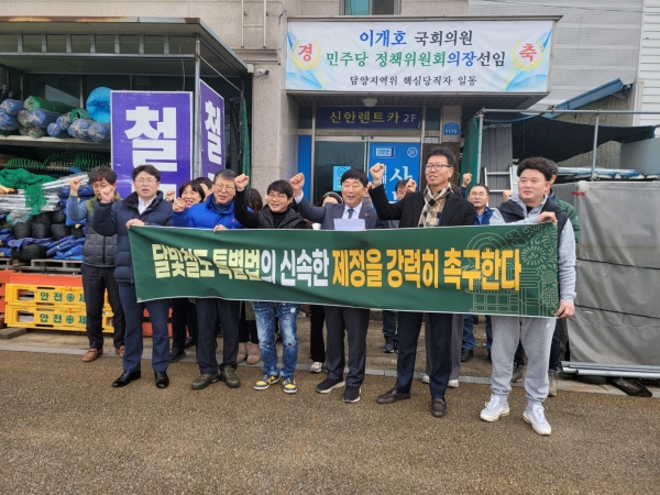 담양군 소상공인연합회는 “261명의 여야 국회의원이 공동 발의한 달빛철도 특별법이 1월 임시국회에서 반드시 통과시킬 것을 강력히 촉구한다”고 밝혔다.