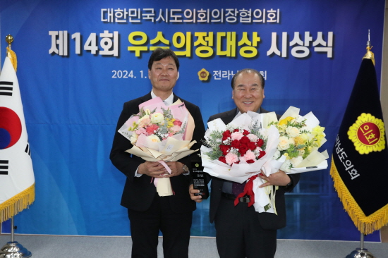 강정일 전남도의원, 시도의회의장협의회 주관 우수의정대상 수상 '쾌거'