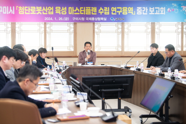 (경북=NSP통신) 조인호 기자 = 구미시는 26일 국제통상협력실에서 첨단 로봇산업 육성 마스터플랜 수립 연구용역 중간 보고회를 개최했다.