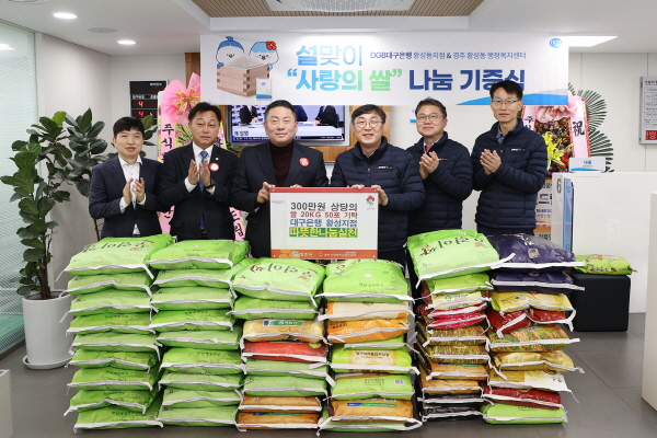(경북=NSP통신) 김대원 기자 = DGB대구은행(139130)은 새해 따뜻한 금융 실시를 위한 사회공헌활동의 일환으로 경주 황성동 지점에서 ‘사랑의 쌀 나눔’ 행사를 진행했다고 밝혔다.