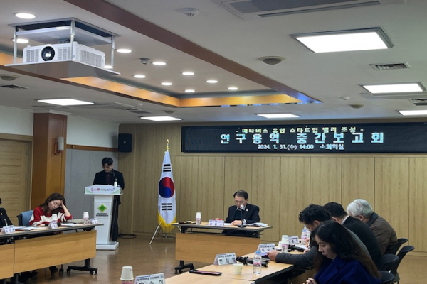 (경북=NSP통신) 김대원 기자 = 경산시(시장 조현일)는 지난 1월 31일 시청 소회의실에서 임당유니콘파크와 연계한 ICT 신산업 육성과 산학연 혁신 거점 구축을 위해 ‘메타버스 융합 스타트업 밸리 조성 연구용역’ 을 실시하고 중간보고회를 개최했다.