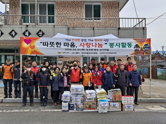 (전남=NSP통신) 김성철 기자 = 광양소방서(서장 정강옥) 119생활안전순찰대는 옥곡면 명주마을, 신기마을 복지사각지대 소외계층을 대상으로 LF스퀘어 광양점, 민간 봉사단체인 광양퍼플 로타리 클럽, 신한전기 안전관리, 성전이엔씨, 옥곡면 의용소방대가 협업해 ‘따뜻한 마음, 사랑 나눔’ 봉사활동을 실시했다.