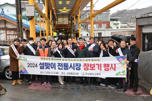 (경북=NSP통신) 조인호 기자 = 경상북도교육청(교육감 임종식)은 5일 김천황금시장에서 민족 고유의 명절인 설을 앞두고 지역 경기 활성화를 위한 전통시장 장보기 행사를 가졌다.