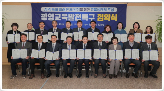 (전남=NSP통신) 김성철 기자 = 광양시는 지난 5일 시청 접견실에서 교육발전특구 시범지역 지정·운영을 위한 ‘교육발전특구 지역협력체 업무협약식’을 개최했다.