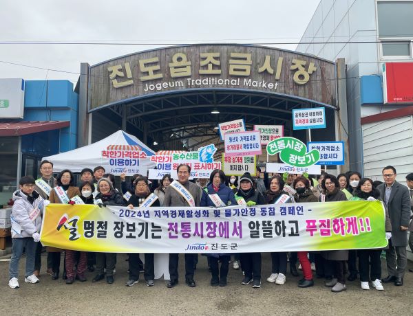 (전남=NSP통신) 김현 기자 = 전남 진도군이 진도읍 조금시장에서 설 명절맞이 전통시장 장보기 운동을 실시했다.