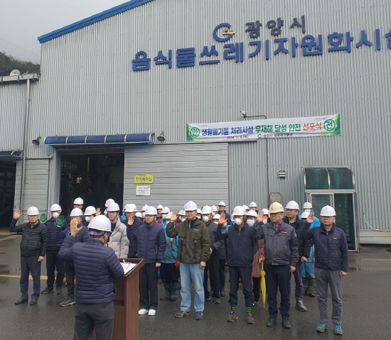 (전남=NSP통신) 김성철 기자 = 광양시는 지난 6일 ‘생활폐기물 처리시설 무재해 달성 안전 선포식’을 개최해 생활폐기물 처리시설 종사자의 산업재해 예방을 위한 실천을 다짐했다.