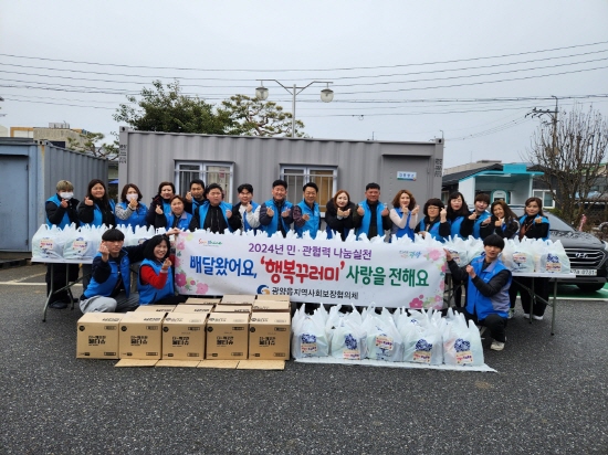(전남=NSP통신) 김성철 기자 = 광양시 광양읍지역사회보장협의체(공공위원장 정용균, 민간위원장 허형채)는 지난 1월 29일부터 설 연휴 전까지 소외계층에게 따뜻한 명절선물을 전달하기 위해 ‘배달왔어요, ‘행복꾸러미’ 사랑을 전해요‘ 배달 봉사를 완료했다.