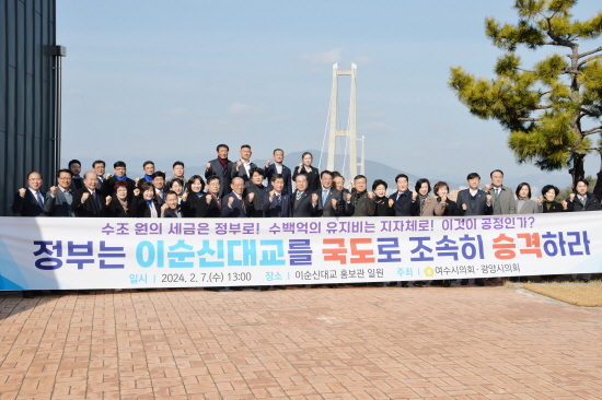 광양·여수시의회 의원들은 “지난 2013년부터 지속적으로 요구해 온 이순신 대교 국도 승격을 정부가 더 이상 미루지 말 것”을 밝히며 ▲정부는 이순신대교 포함 국도 59호선 기점을 광양 태인에서 여수 월래로 즉시 연장할 것 ▲정부는 이순신대교와 국가산단 진․출입도로 유지․관리 책임을 즉시 이행할 것을 강력히 촉구했다.