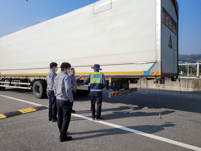 NSP통신-고속도로순찰대와 합동으로 고속도로에서 화물차 안전단속을 하고 있다. (사진 = 한국교통안전공단 경기남부본부)