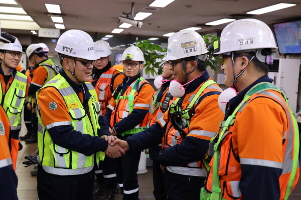 포스코 천시열 포항제철소장이 7일 설 연휴를 앞두고 현장 조업부서 근무자들을 격려했다. (사진 = 포스코 포항제철소)