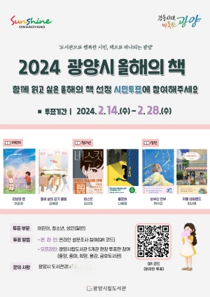 (전남=NSP통신) 김성철 기자 = 광양시가 ‘2024 올해의 책’ 선정을 위한 시민투표를 2월 28일까지 실시한다.