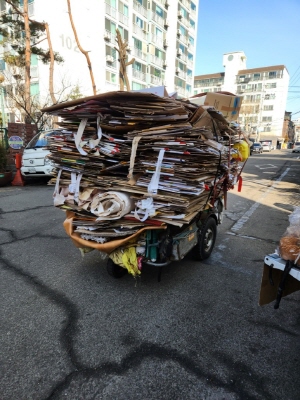 보건복지부의 ‘2023년 폐지수집 노인실태조사’에 따르면 전국 폐지수집 어르신 규모는 4만 2000명에 달한다. 하루 5시간 40분씩, 1주일 평균 6일을 일하고, 월수입은 15만 9000원이어서 지원대책이 절실한 것으로 나타났다.