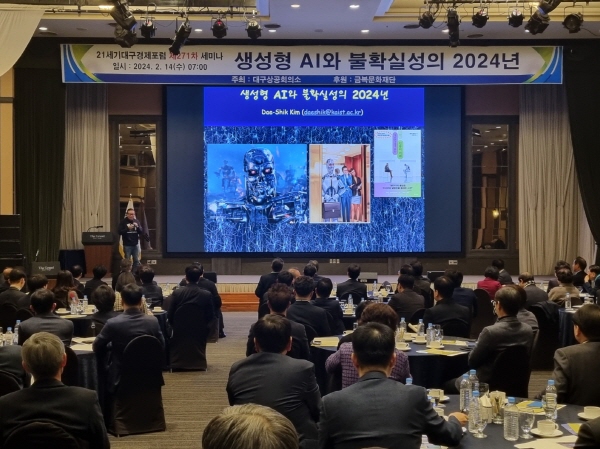이날 세미나에서는 김대식 카이스트 교수가 ‘생성형 AI와 불확실성의 2024년’ 이란 주제로 강연을 했다.