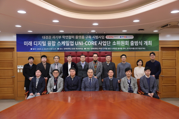 (경북=NSP통신) 김대원 기자 = 대경·강원권 학연협력플랫폼 사업단인 ‘미래 디지털 융합 스케일업 UNI-CORE사업단(이하 사업단)’ 이 위원회를 구성하고, 지난 14일 경북대 본관 제1회의실에서 출범식 및 현판식을 가졌다.
