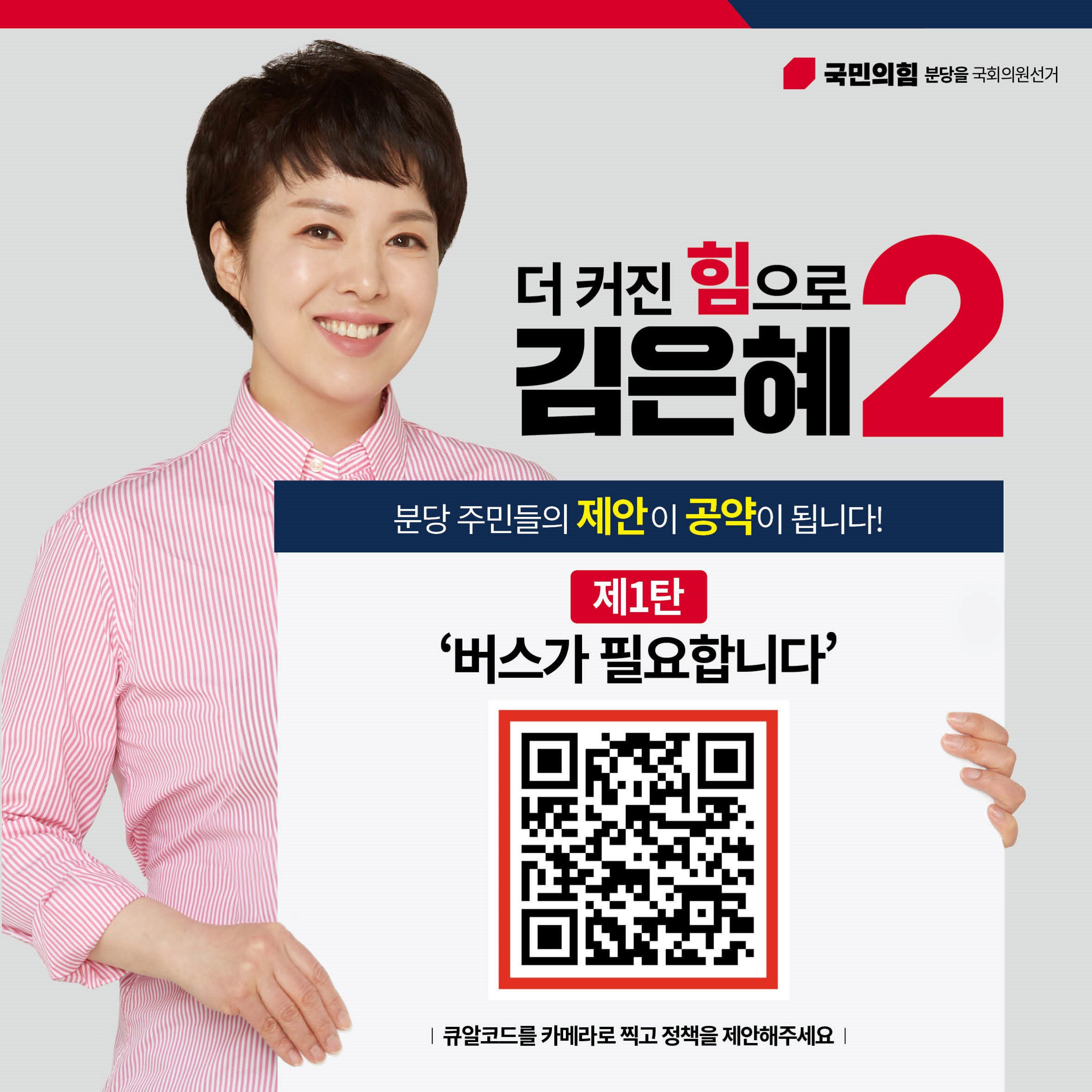 버스에 대한 민원 신청은 김은혜 예비후보의 SNS 및 명함 QR코드 등을 통해 가능하다.