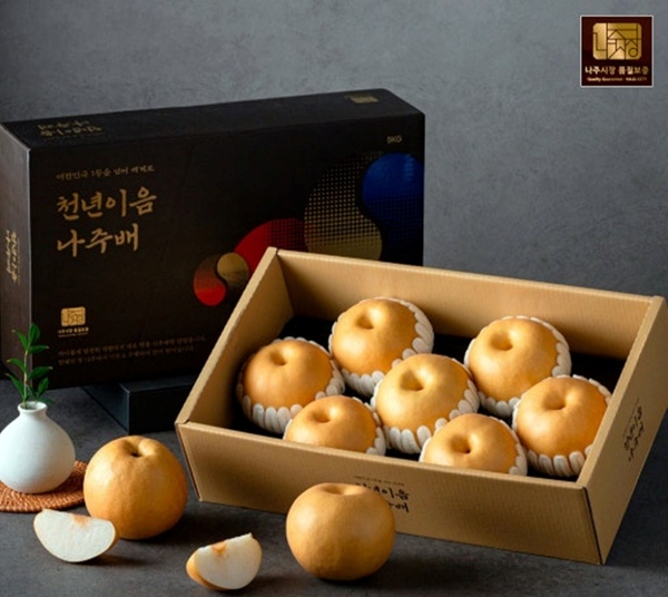 전국 최대 배 주산지인 나주시(시장 윤병태)가 지난해부터 선보인 ‘천년이음 나주배’가 뛰어난 맛과 품질로 전국 소비자들의 입맛을 사로잡고 있다.