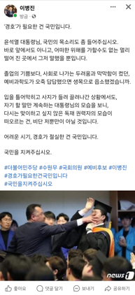 이병진 예비후보는 “어려운 시기, 경호가 절실한 건 국민”이라며 “국민을 지켜달라”고 강조했다.