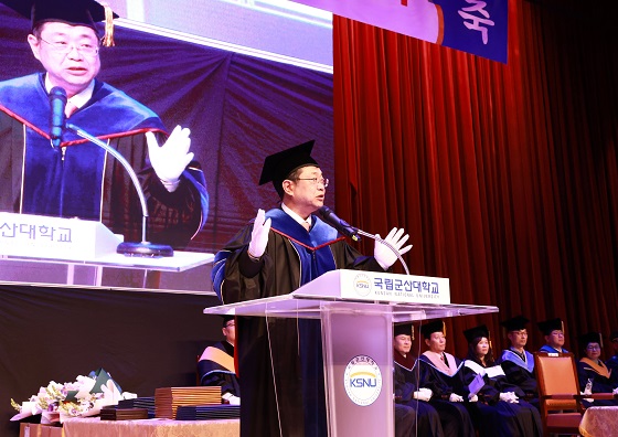 이장호 총장이 20일 2023학년도 전기학위수여식에서 축사를 하고 있다. (사진 = 군산대학교)