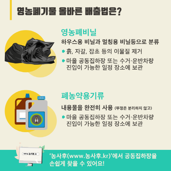 2월 20일~4월 30일까지 영농폐기물(폐비닐, 폐농약 용기류 등) 집중 수거