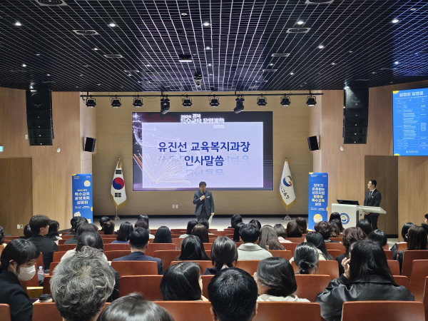 이날 행사는 특수교육 운영 계획 수립 취지 설명, 장애 학생 자립 생활교육관인 ‘꿈 담채’ 운영, 제1회 ‘교육감기 장애 학생 체육대회’ 개최 등 신규사업과 특수교육 대상 학생 선정·배치 업무 매뉴얼 등에 대한 설명 등으로 진행됐으며, 현장 참여 교사들로부터 큰 호응을 얻었다.