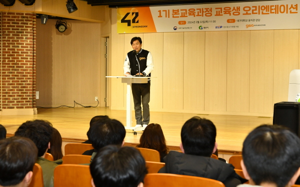 경산이노베이션아카데미는 22일 대구대학교 웅지관 강당에서 42경산 제1기 본교육과정 교육생 오리엔테이션을 가졌다. (사진 = 경산이노베이션아카데미)