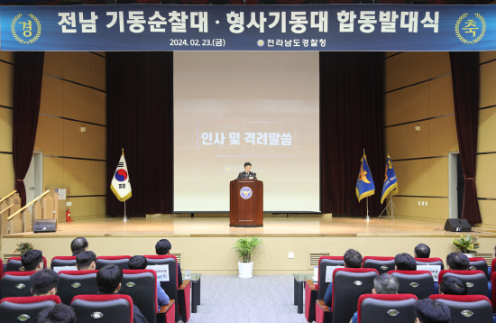 (전남=NSP통신) 김성철 기자 = 전남경찰청(청장 박정보)은 청사 내 1층 남악홀에서 기동순찰대·형사기동대 합동 발대식을 개최했다.
