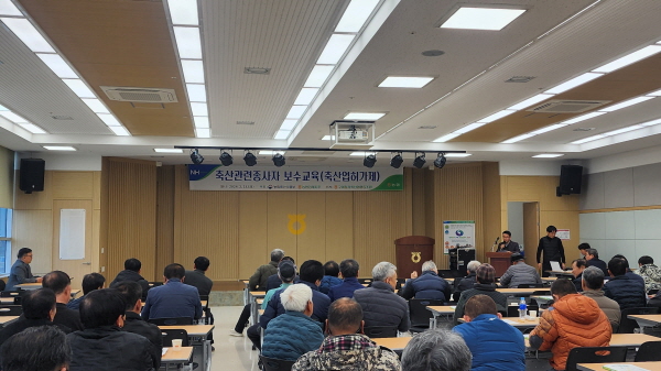 이번 교육은 2023년 축산업 허가(등록) 보수교육을 이수하지 못한 축산농가 250명을 대상으로 전문가들을 초빙해 축산법규, 축산환경, 동물복지, 가축방역 및 질병 관리 등에 대한 강의 순으로 진행됐다.