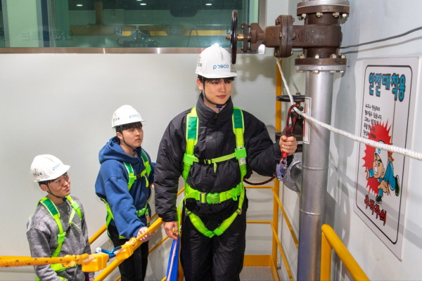 먼저 위험 상황을 체험하는 과정의 경우 안전벨트를 착용한 상태에서 약 3m 높이의 발판에서 떨어지는 상황을 체험해보며 고소 작업 간 안전벨트 착용의 중요성을 터득할 수 있도록 했다. 광양제철소 안전문화체험관에 마련된 가상의 고소 작업 훈련장은 실제 현장과 유사한 모습으로 조성됐으며, 이곳에서 낙하 상황을 가정한 훈련을 진행해 인턴사원들에게 보다 더 실감나는 훈련을 제공할 수 있었다는 후문이다.
