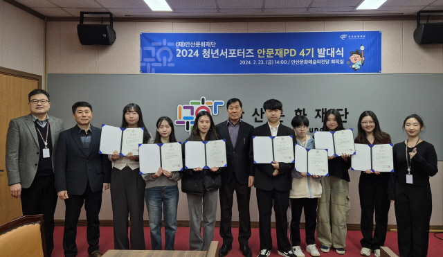 (경기=NSP통신) 김병관 기자 = 경기 안산문화재단(이사장 이민근, 대표 이성운)은 지난 23일 안산문화예술의전당 회의실에서 ‘2024년 안산문화재단 청년서포터즈 안문재PD 4기’ 발대식을 열고 서포터즈 활동을 본격 시작한다.