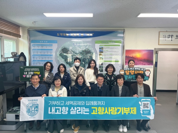 김종곤 가사문학면장은 “상호 기부를 통해 상생발전은 물론 상호교류와 협력을 강화하는 계기가 됐다”며 “고향사랑기부제의 적극적인 참여를 통한 지역경제 활성화로 기부자, 자치단체 및 지역 생산자 모두가 행복하기를 바란다”고 말했다.