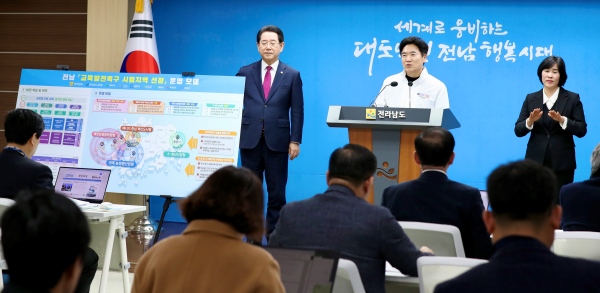 전남도교육청과 전남도는 28일 전남도청 브리핑룸에서 공동 브리핑을 갖고 이런 내용의 ’교육발전특구 시범지역 선정 1차 공모’ 결과를 발표했다.