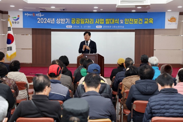 김성 군수는 “참여자 중 고령자가 많은 만큼 사업 현장의 안전성을 최우선으로 고려하고 있다”며 “지역의 실정에 맞는 맞춤형 일자리를 마련하고 경험을 축적해 일자리 사업이 군민의 실질적인 삶에 도움이 되도록 최선을 다하겠다”고 전했다.