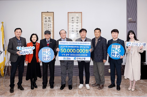이날 전달식에는 윤석정 전북애향운동본부 이사장, 박성훈 전북은행 부행장 등이 참석했다.